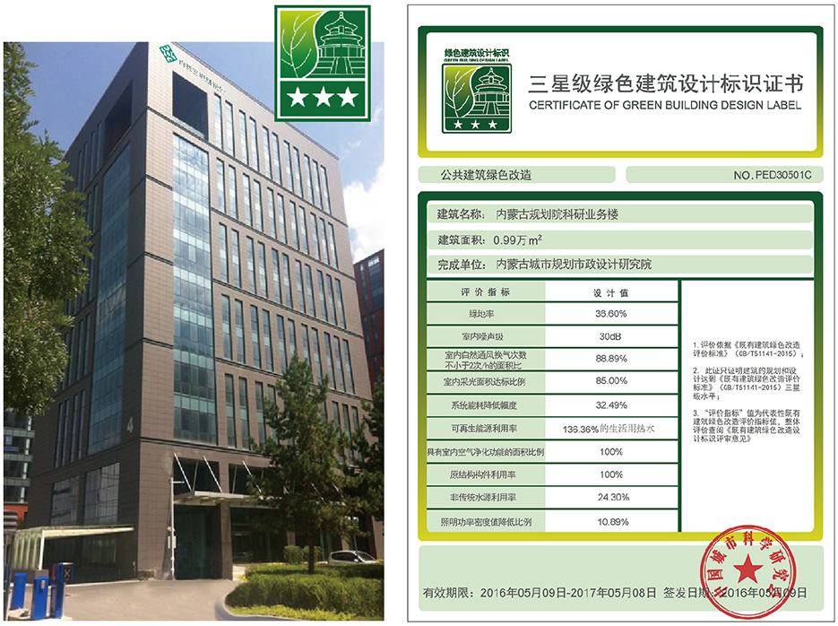 2016年4月15日通過了由中國城市科學(xué)研究會組織的既有建筑綠色改造項目專家評審會,成為全國第一批第一個獲得綠色建筑三星級設(shè)計標(biāo)識的公共建筑。
